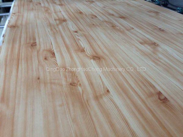 This photo shows laminate pvc film on Particle board,the surface is flat and strong.