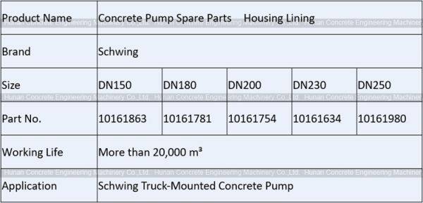 Concrete Pump Parts Schwing Cover Lining 10018029