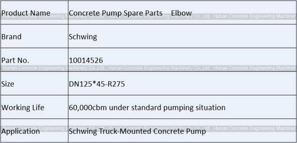 Concrete Pump Parts Schwing Elbow DN125 x R275-45 Degree 10014526