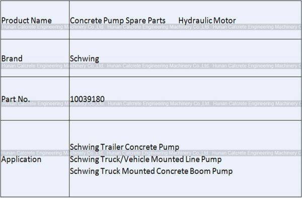 The Specifications for Schwing Hydraulic Motor: