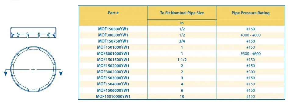 Our MOF Series parts are molded in yellow LDPE plastic to fit 1/2" thru 10" nominal sized pipe flanges.