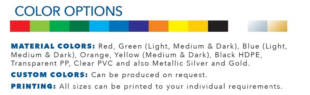 Telescopic tubes are available in transparent Polypropylene (PP). Additional colors and materials are available.