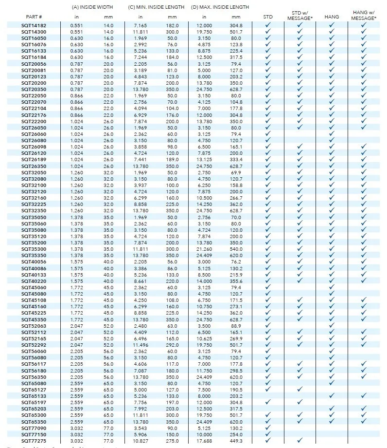 Square Telescopic Tubes are a quick packaging solution designed for a wide variety of applications. The durable protective tubes provide an adjustable ratchet-length feature that allows for a secure, perfect fit at an affordable price. Multiple applications for square telescopic tubes include everything from packaging of tools, drills, taps, milling cutters, etc. in the cutting tool industry to retail and consumer packaging in the hobby, craft, electrode, office supply, fishing and dental industries. Hanger option is available for some dimensions. Telescopic tubes are an efficient and attractive packaging solution that can be re-used.