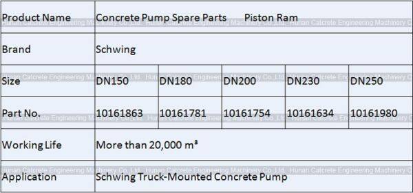 The Specifications for Schwing Concrete Pump Piston Ram: