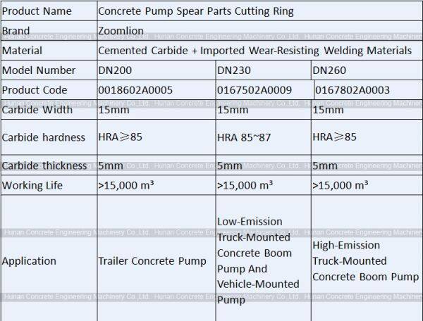 The Specifications for Zoomlion Wear Ring Cutting Ring: