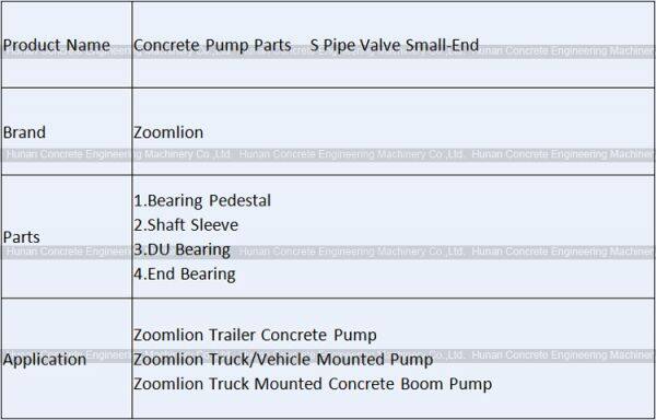 The Specifications for Zoomlion S Pipe Small-End Bearing Housing: