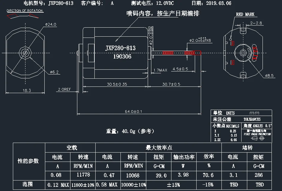 | Model Number | JXF280-813 | Type | Micro Motor | |