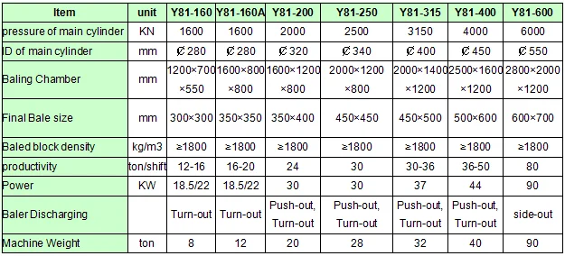 metal recycling processing machine/scrap metal baling press are applied in steel mills, recycling plants, ferrous & non-ferrous smelting industry to recycle metal scrap (steel, copper, aluminum, stainless steel, discarded automobiles, etc) into acceptable furnace charges in shapes of cuboids.