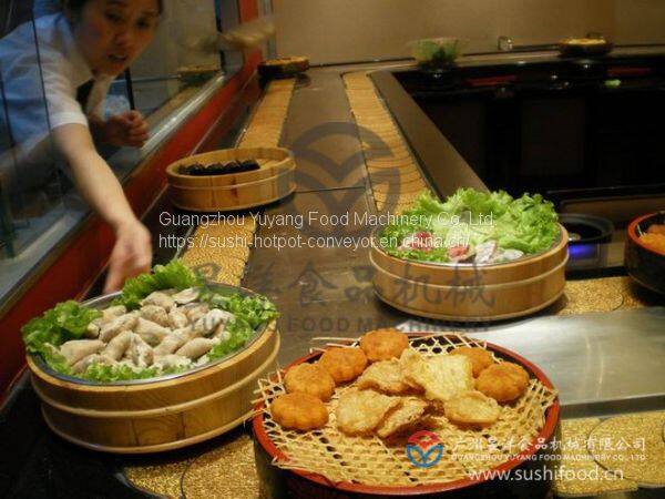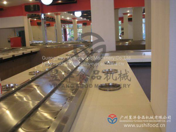 This device has a wide range of uses and has become a popular element today, suitable for hot pot, buffet restaurants and other merchandise displays. Single furnace meets people's hygienic habits, hot pot conveying equipment has the advantage of dual use. It is used in hot pot in winter and sushi in summer. Just to use a special stainless steel cover to seal the furnace hole on the table will become sushi. The equipment is both affordable and convenient, allowing you to enjoy the fun of running sushi and hot pot, and it is convenient for guests to choose the food placed on the conveyor belt in their seats without the waiter.