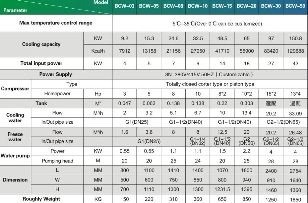 | Model Number | BCW-15 | Type | Water-Cooled | |