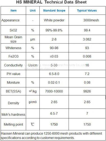 Product Description: Ultrafine silica powder is a kind of inorganic nonmetallic mineral functional powder material, which is made of natural quartz ore, fused silica and so on. It is finely processed by color selection, acid leaching, flotation, magnetic separation, grinding and precision classification. It has fine particles, no large particles, good suspension and narrow particle size distribution. The specific surface area is large, the settlement resistance is good, and has certain reinforcing effect. It also has excellent properties such as acid and alkali corrosion resistance, poor thermal conductivity, high insulation, low expansion and high purity.