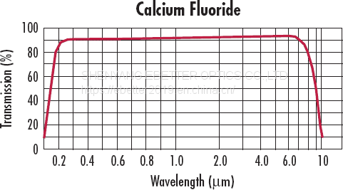 Calcium fluoride (CaF2) window material has a light transmission range of ultraviolet light 0.13 ~ far infrared 10μm (there are five levels: IR infrared, VIS visible, UV ultraviolet, VUV vacuum ultraviolet, excimer level). It is excellent ultraviolet and infrared Window material.