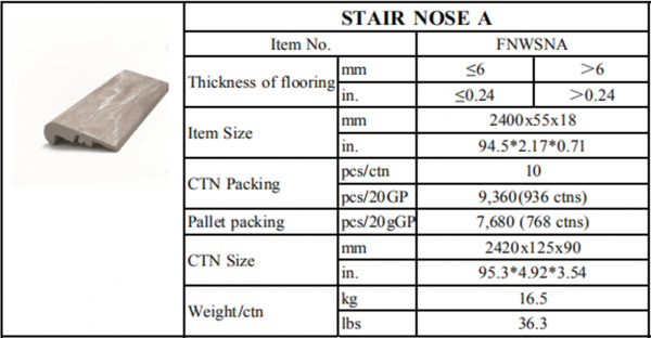 | Model Number | FNWSNA | Flooring Accessories Type | Other, Stair Nose |