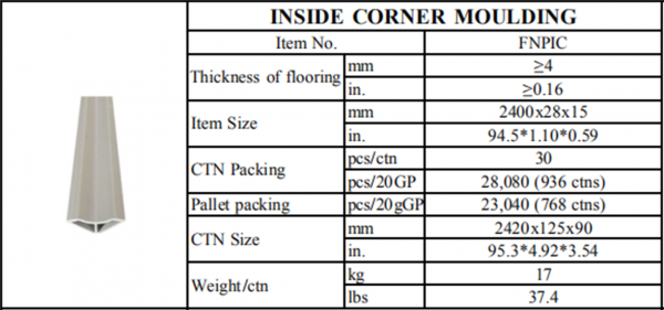 | Model Number | FNPIC | Flooring Accessories Type | Other, Inside Corner Moulding |