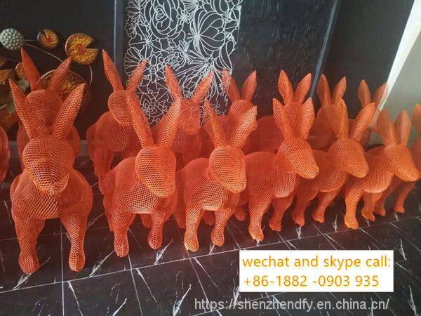 Iron Mesh Rabbit Sculpture Customized Unique Square