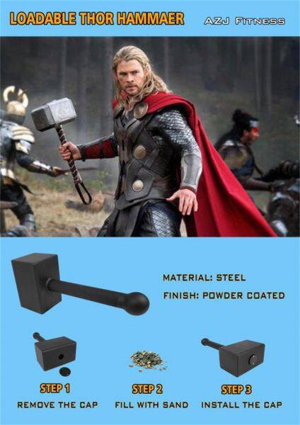Features a hollow hammer head into which you can fill small materials such as rock pebbles or BB pellets for weight adjustments from 8.9lbs up to around 20lbs. Comes with a hammer cap and 2 screws to better secure the materials once loaded.