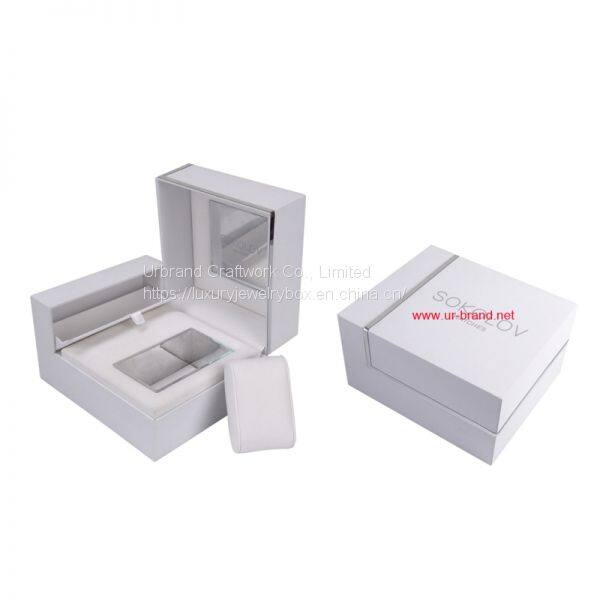 Custom Logo White Paper Hinge Box With Mirror Design Inside for Luxury Watches Urbrand