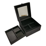Handmade Luxury Fancy PU Leather Jewelry Box With Mirror Black Color Custom Size Urbrand