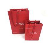 Matte Laminated Red Bottom Folding Branded Paper Bags With Cotton Rope , Silver Foil Logo Urbrand