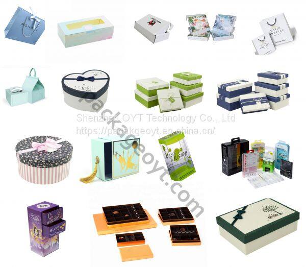 OYT mainly gift box, paper box, luxury box, plastic box, packaging, shopping bags could e used in: chocolate, wedding, gift, cosmetic, personal care, eye lash, eyeshadow, usb, phone, earphone, adapter, manual, Christmas, Festival, Cake, COOKIE, nursing bottle packaging, medicine, vapor,cigar, apparel, clothe etc.