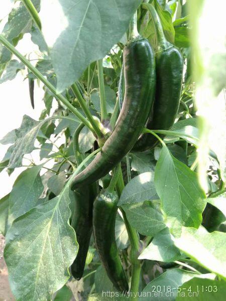 Fruit length 10cm,diameter 2cm,thick flesh,straight,glossy,bright red when ripens,high fruit-setting,fresh fruit 2500-3000kg/667㎡,dry fruit 400kg/667㎡,anti virus disease、epidemic disease and blossom-end rot, lodging resistant,high oil、spicy and pigment,ideal species for export and deep processing.