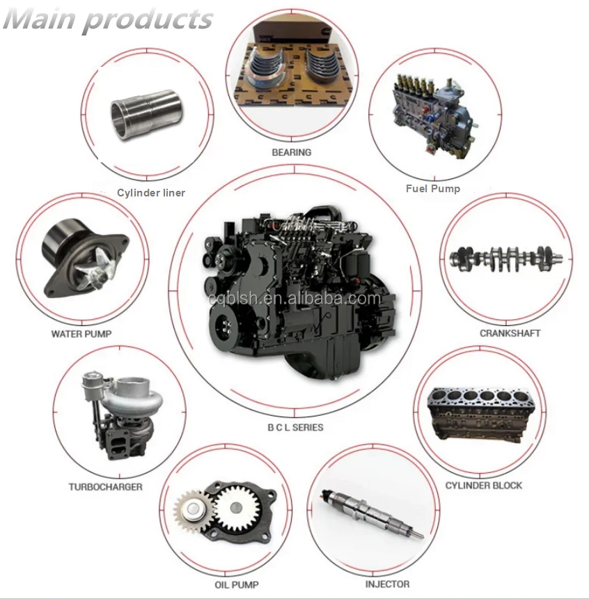 We are specialized in the famous diesel engine spare parts in wholesale and retail trade, such as cylinder block, head cylinder, cylinder liner, piston, piston ring, inter cooler, after cooler core, manifold exhaust, crankshaft, main bearing, connecting rod, rod connecting bearing, camshaft, turbocharger, rocking housing, oil pump, fuel pump, and all other parts for an engine. These parts are used to the engine model NT855, N14, K19, K38, K50, M11, V28.