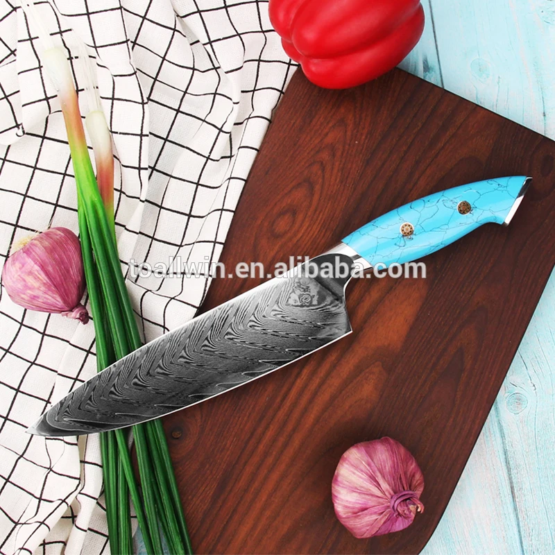 Product Name: | Premium style 8 inch turquoise handle damascus chef knife |