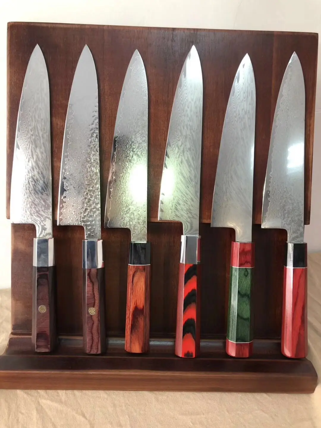 Pakkawood Handle 67 Layer VG10 Damascus Steel Kitchen Knife Set With Wooden Block