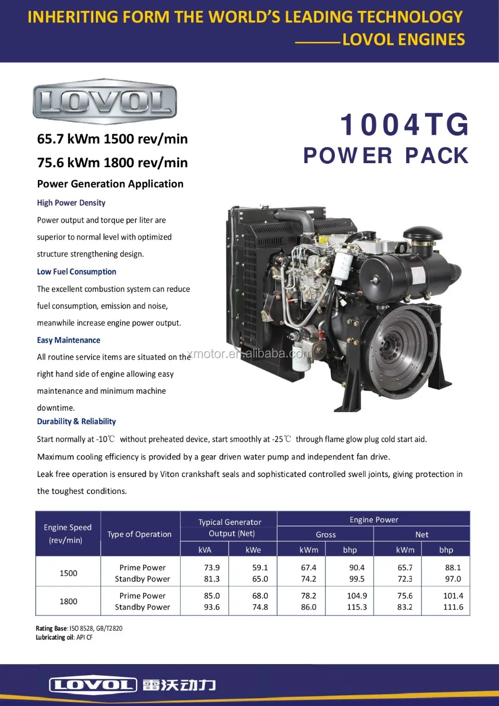 Generating Lovol Diesel Engine With Rotary Pump Model 1004G