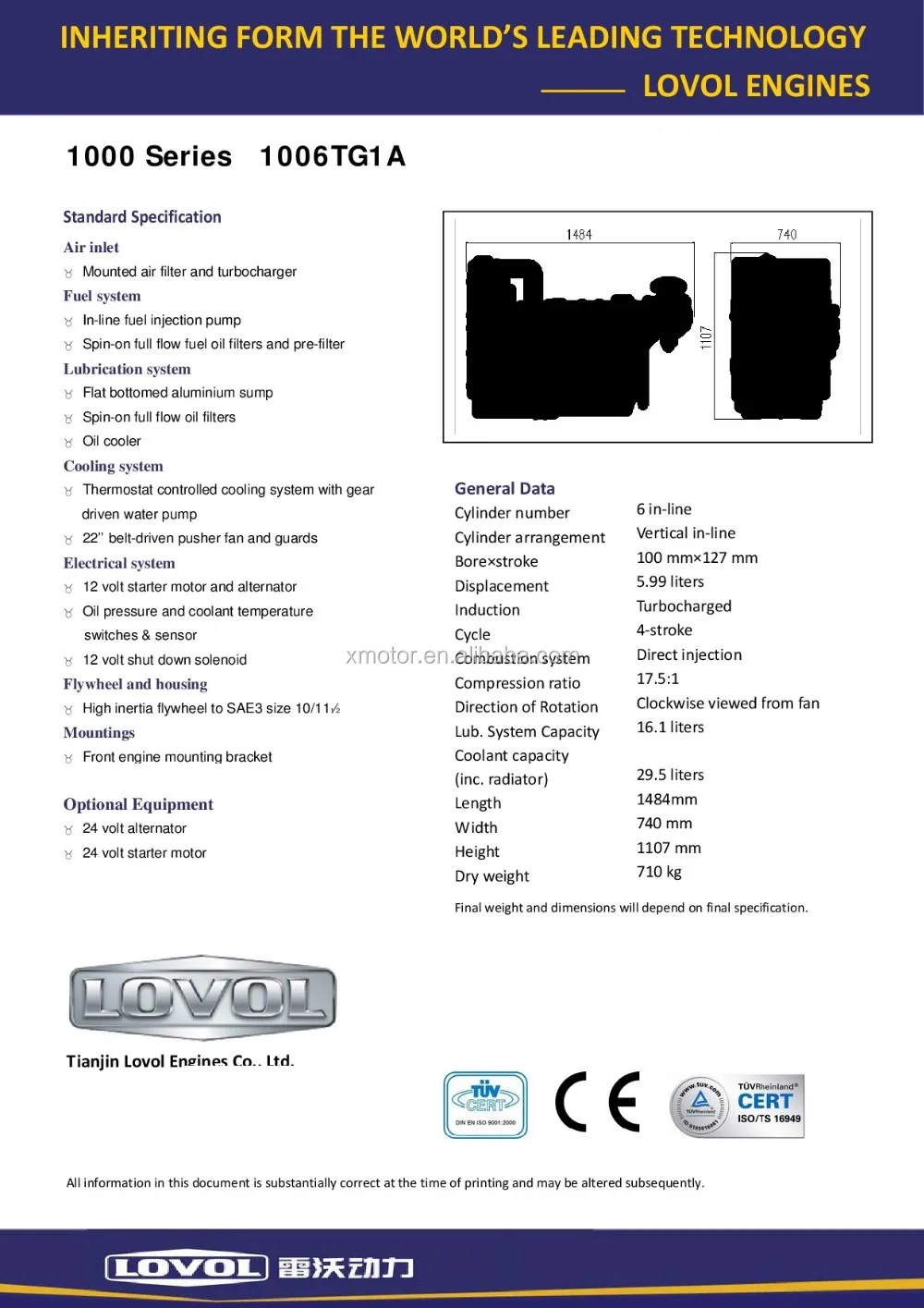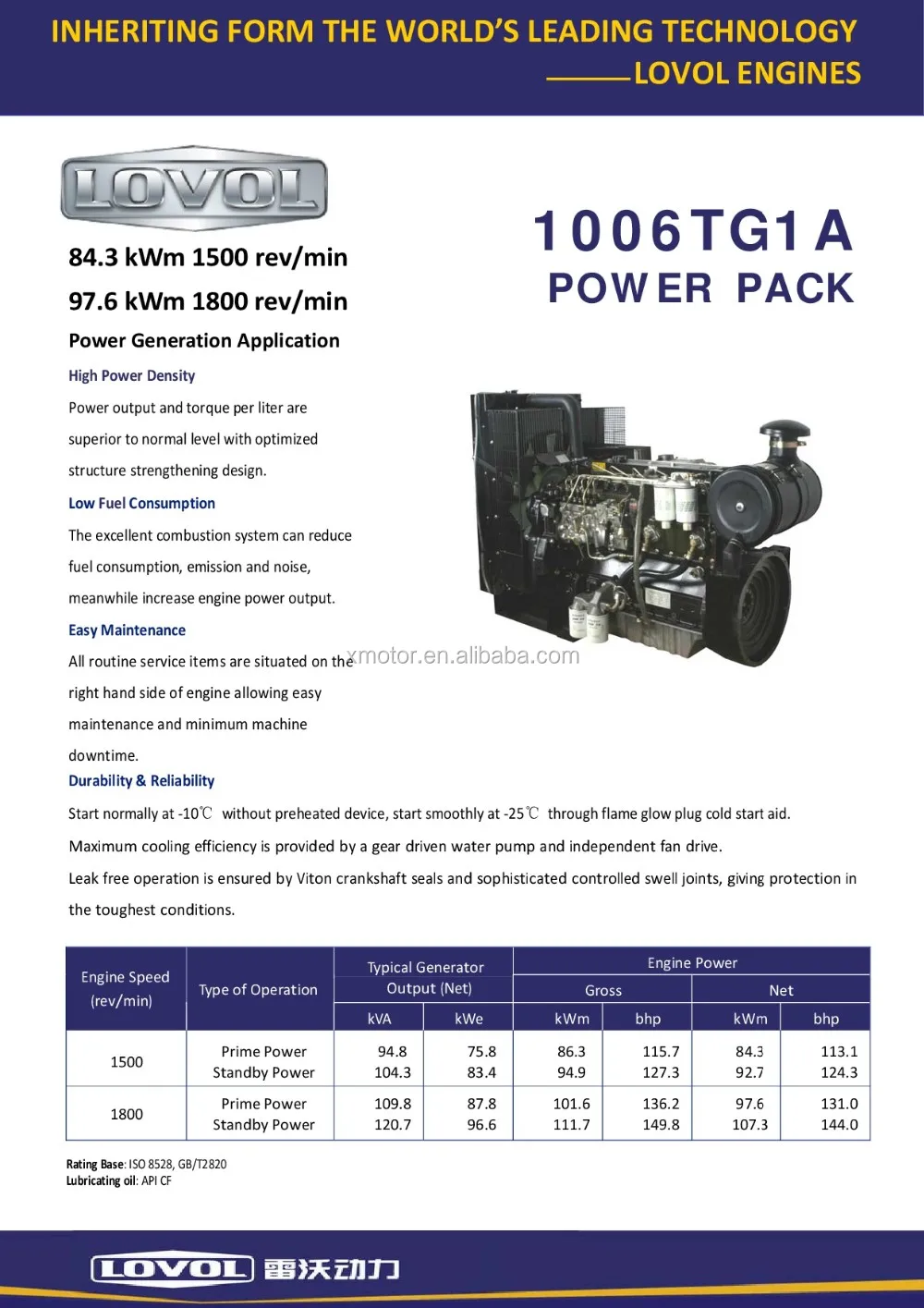 LOVOL 1006TG1A DIESEL ENGINE FOR GENERATOR