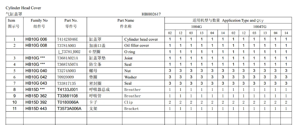 OEM FOTON LOVOL Engine Space T74701018 T74701023 T74806009 T748070005 T748070006 T748070022 T748070023 T748070025 T748070031 T