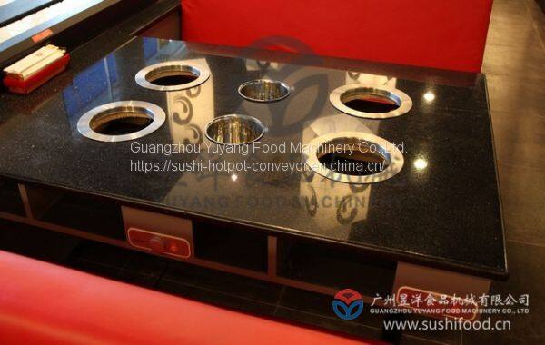 This device has a wide range of uses and has become a popular element today, suitable for hot pot, buffet restaurants and other merchandise displays. Single furnace meets people's hygienic habits, hot pot conveying equipment has the advantage of dual use. It is used in hot pot in winter and sushi in summer. Just to use a special stainless steel cover to seal the furnace hole on the table will become sushi. The equipment is both affordable and convenient, allowing you to enjoy the fun of running sushi and hot pot, and it is convenient for guests to choose the food placed on the conveyor belt in their seats without the waiter.