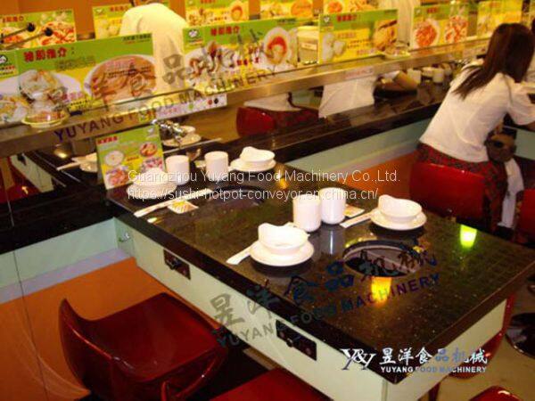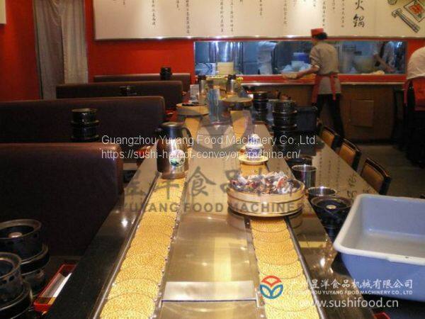This device has a wide range of uses and has become a popular element today, suitable for hot pot, buffet restaurants and other merchandise displays. Single furnace meets people's hygienic habits, hot pot conveying equipment has the advantages of dual use. It is used in hot pot in winter and sushi in summer. Just to use a special stainless steel cover to seal the furnace hole on the table will become sushi. The equipment is both affordable and convenient, allowing you to enjoy the fun of running sushi and hot pot, and it is convenient for guests to choose the food placed on the conveyor belt in their seats without the waiter.