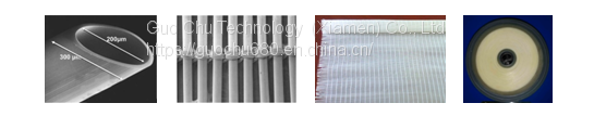 1) Hollow fibers are knitted into an array, so that a certain space can be kept between these fibers. In this way, thousands of fibers are connected as a whole array which can resist strong water flow and will not break. Besides, the mass transfer efficiency can be improved in the array structure.