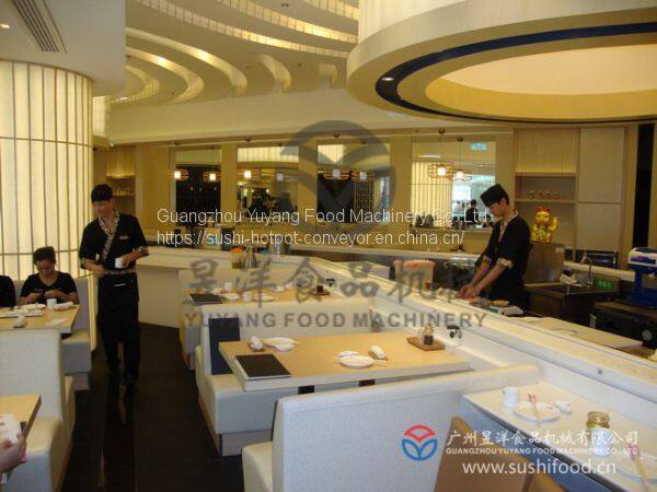The equipment is both affordable and convenient for guests to choose the food placed on the conveyor belt in their seats without the waiter.