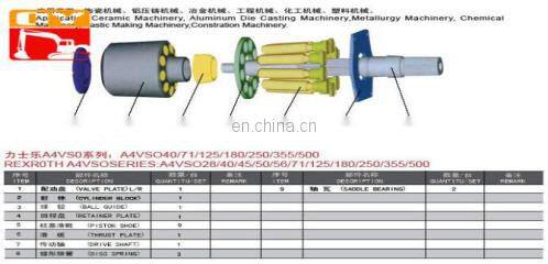 Rexroth A4VSOhydraulic pump accessories. Plunger hydraulic pump is composed of cylinder block, plunger, oil distributor, return disc, ball hinge, thimble, swing assembly, drive shaft and other parts.