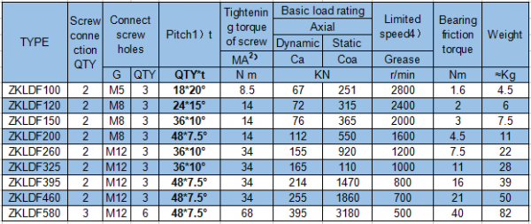 ZKLDF axial angular Contact ball bearing series using complex barium-base grease, you can add the Grease through grease hole. ZKLDF Axial angular contact ball bearing series are designed with 60 contact angle and two Rows of ball rollers, which can support radial load, double axial loads and tilting moments. Due to the special design with copper cages, the bearing have higher strength and lower Friction torque. so this kind of bearings are especially Appliated to the situation with super speed, long time running, high stiffness and High precision.