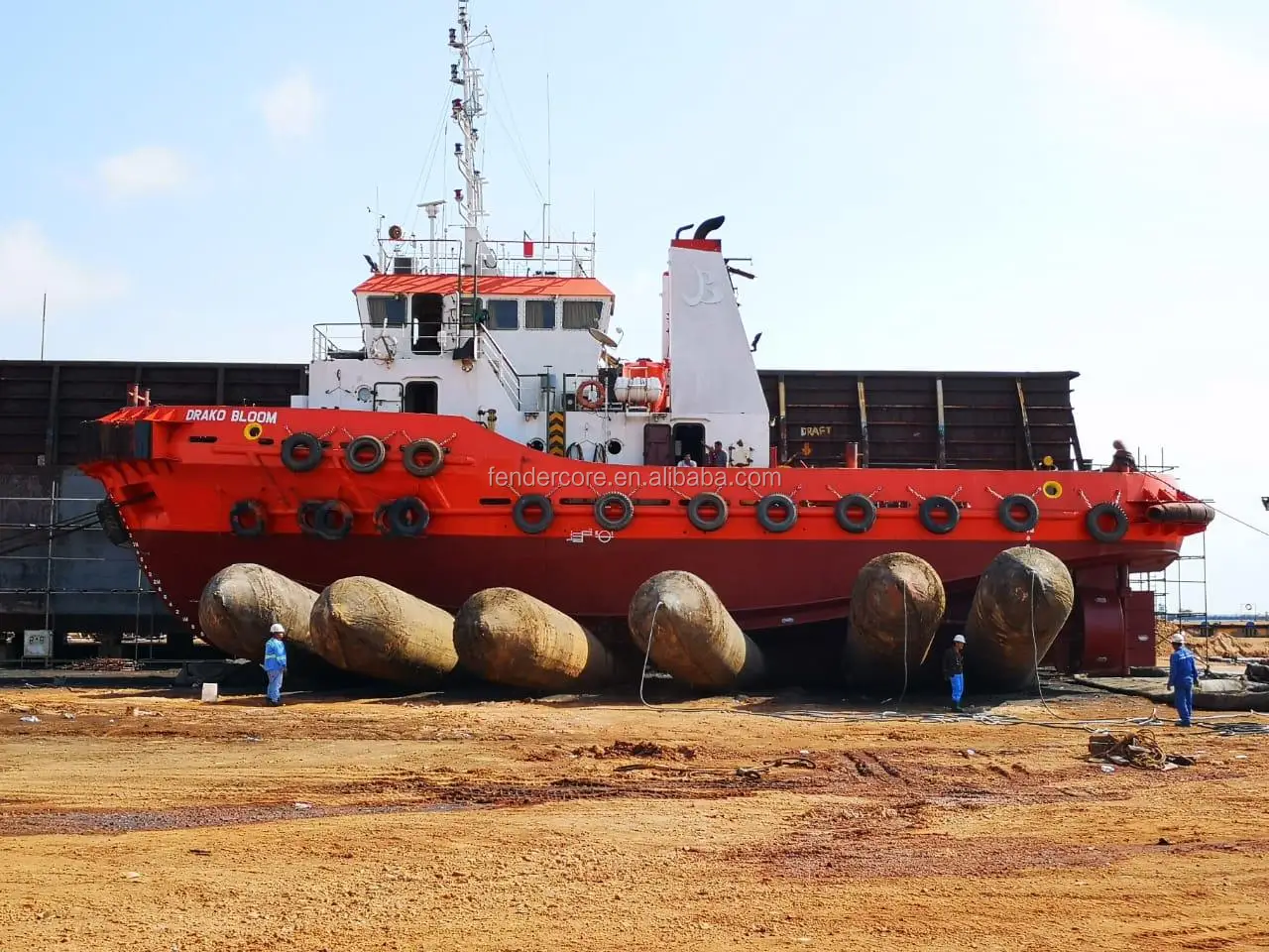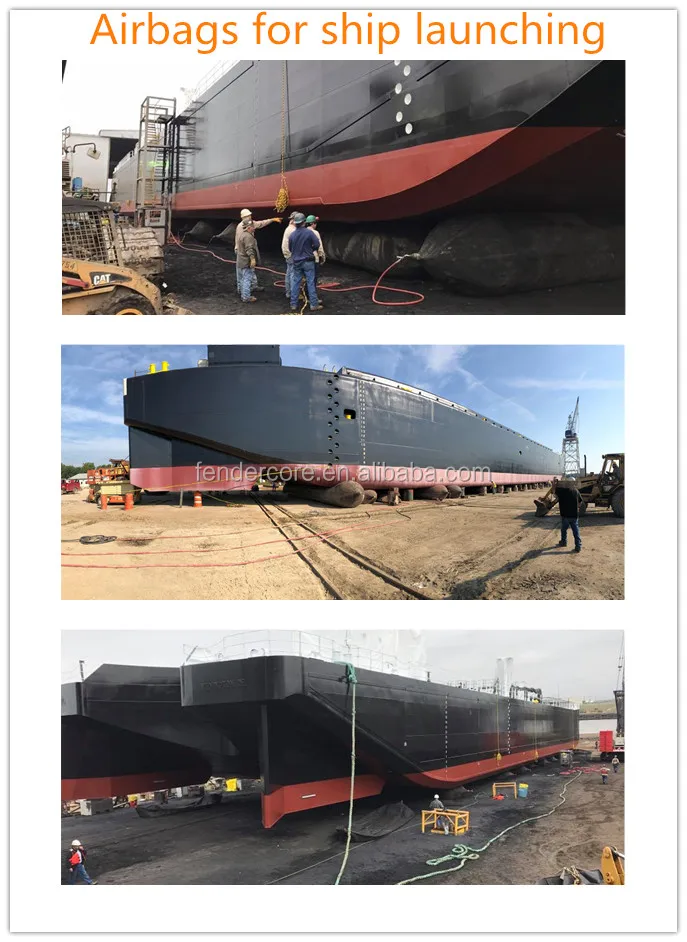 Florescence ship rubber airbags can be used to launch and land a ship up to 100,000DWT. Comparing to the traditional slipway launching method, the ship rubber airbags are much convenient, because ship airbag can launch a ship at any seaside, so there's no need to worry about the construction of launching facilities; besides, the marine airbag need little maintenance and can be used repeatedly. Need no more than air compressors, winches and ropes.
