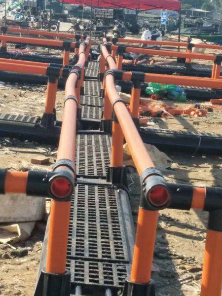 There are two kinds of fish world cage, square and round, mainly black blue stripe PE pipe. The pipe fittings are orange and black, which have a sharp contrast with the water surface, and the visual appearance is beautiful and atmospheric.
