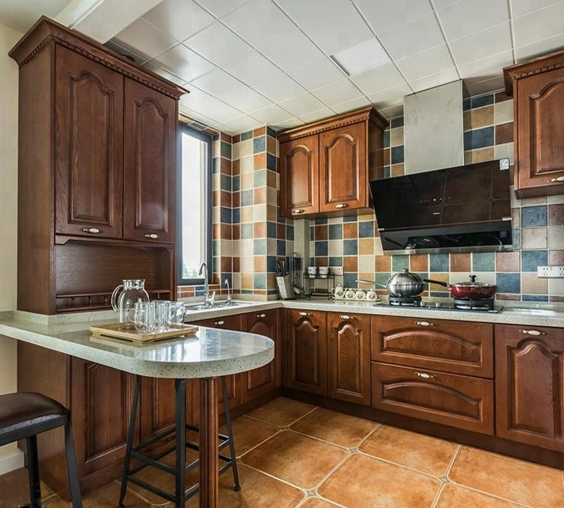 American Style Solid Wood U Shaped Design Kitchen Cabinet for Sale