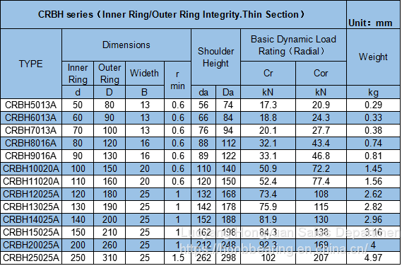 | Model Number | CRBH10020 | Number of Row | Single Row | |