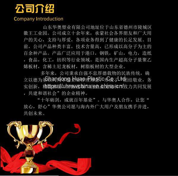 UHMWPE sheet reduce noise from impact .It is a self-lubricating material that is chemical ,corrosion,and wear-resistance.This material is well-suited for drag conveyor flights,Chute liners and hopper liners,Marine construction,ground mat,outrigger pad and so on.