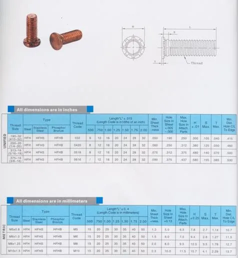 HFH-032-8 High Intensity of Pressure Riveting Screw Self-clinching Studs And Pins Nature PEM Standard Studs Factory Wholesales