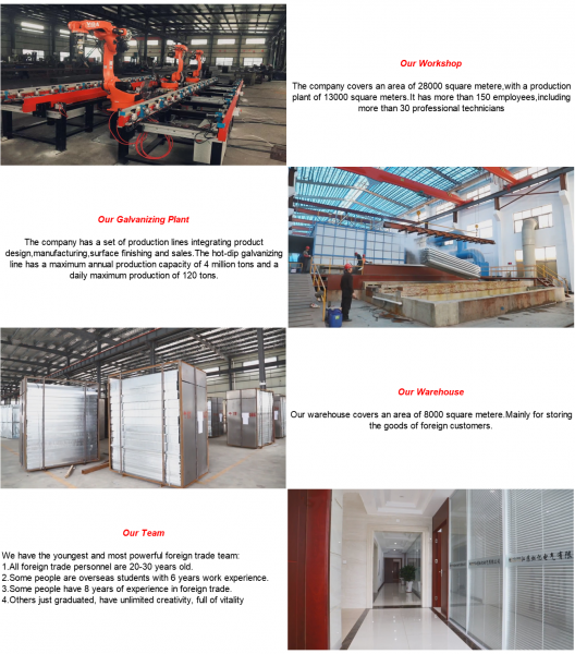 Not long ago, we just finished an order for 300 tons. It took only 20 days. At present, a 400 ton order is being produced, all of which are hot-dip galvanized. It is expected to be completed in 30 days.Hope you will be interested in our product and hope we can have the chance to cooperate with you!