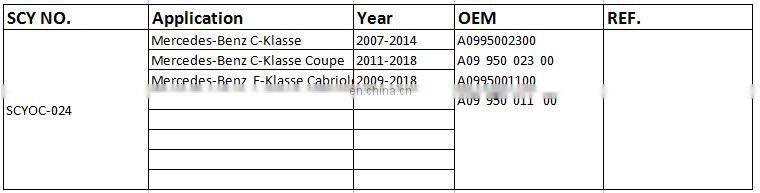 | OE NO. | A0995002300 A09 950 023 00 A0995001100 A09 950 011 00 | Car Make | Oil Cooler for M.ercedes Benz SLK250 A0995002300 | |