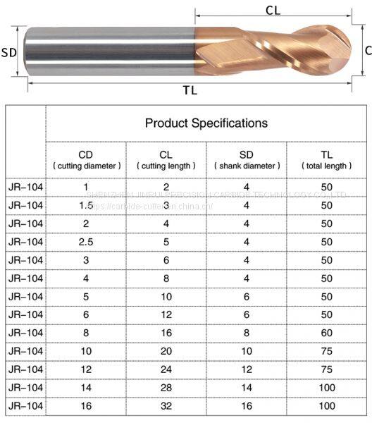 Name:JR104 Carbide ball nose end mill coating for stainless steel