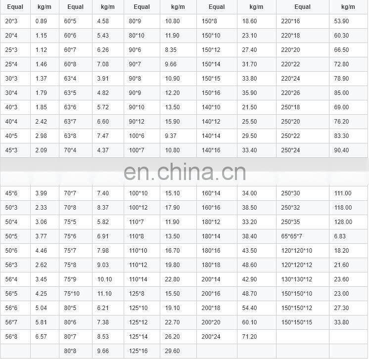 - equal steel angel iron