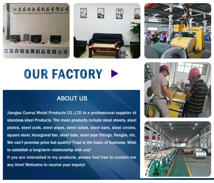 JiangSu CuiRui Metal Products Co., Ltd Is Located In Jiangsu Province Wuxi City, The Large South Stainless Steel Markets In China, Is Also One of the Powerful Company In the Stainless Steel Area With Large Scale And Long History. We Have 2000 Square Meters Of Storage And Processing Center Which Covered Equipment Using In Slitting, Cutting In horizontal, Laser Cutting , Plasma And Grinding Machine And Embossing Machine. We Mainly Sell Stainless Steel Sheet, Pipes, Coils, Bands, Section Bars And So On Which Are Applied In Decoration, Medical Industry, Food Industry, Construction Industry etc, And Have Gained Gain Good Feedback And Establish Mutual Trust With Our Clients. According To Your Requirement We Can Process Brushed Film, 6k, 8k Mirror, Polishing, Yellow Titanium, Black Titanium, Rose Gold, No Fingerprint, And All Kinds Of Colored Stainless Steel Sheet