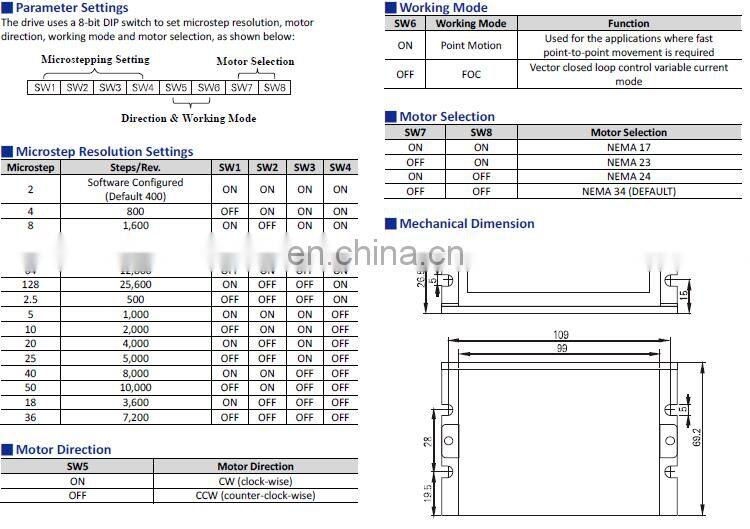 | Step Angle | 1.8° |