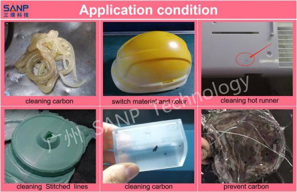 Application: carbide cleaning, carbonization prevention, color change, color streaks cleaning, material switch, hot runner cleaning, downtime maintenance